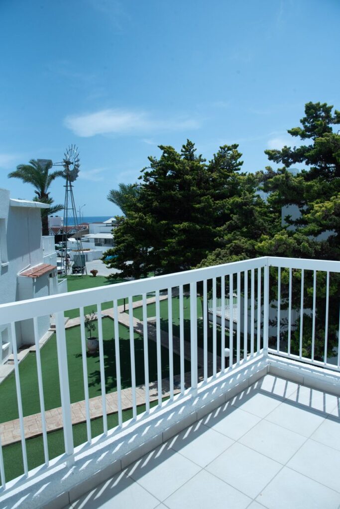 Each apartment features three private balconies overlooking the garden or surrounding area, filling the space with sunshine throughout the day and offering great spots to unwind or enjoy a drink.